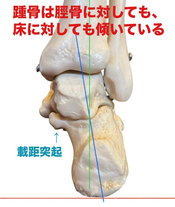 ②距骨は踵骨のやや内側部分に乗る。頸部下は接していない(足根洞)。踵骨の底面外側部分には、 垂直軸的には乗っていない。